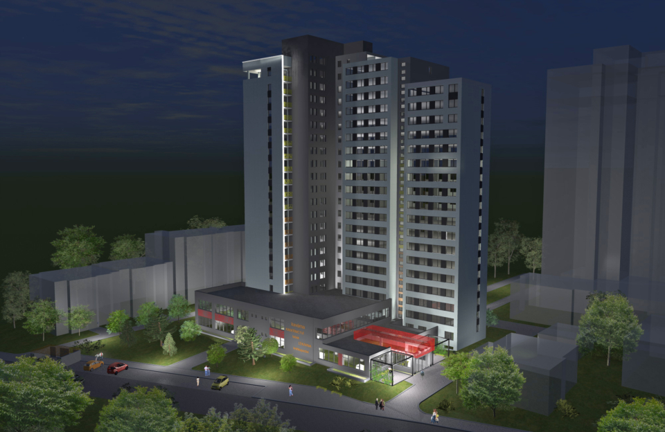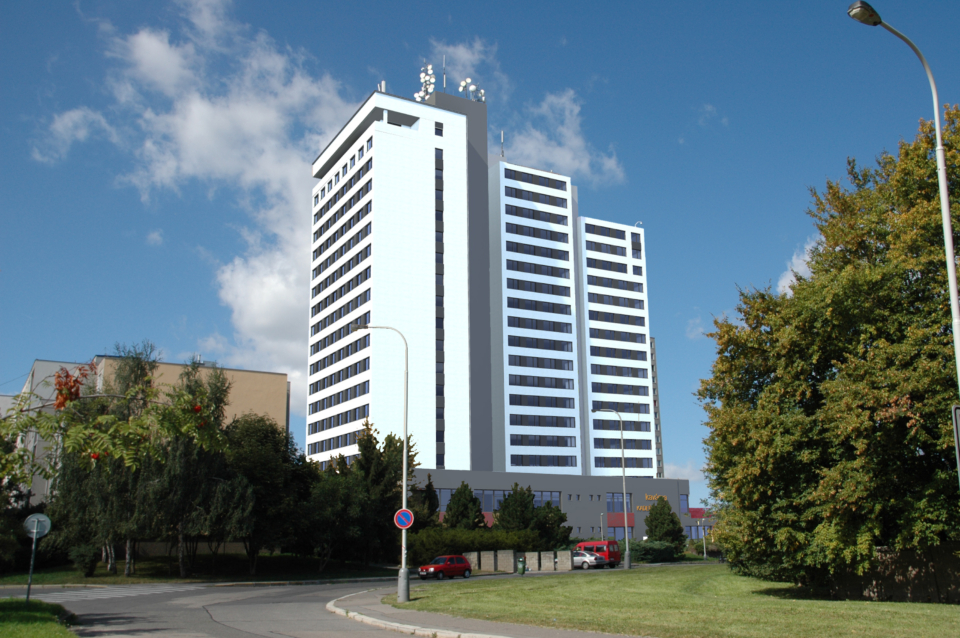 Architektonický návrh staví na modernizaci stávajícího objektu při zachování jeho základního tvaru a funkce. Vychází z principů funkcionalismu, čisté linie, pravoúhlé tvary, horizontální členění fasády. Budova je opticky členěna do tří vertikálních „věží“, které jsou nově zatepleny a opatřeny bílou omítkou. Na fasádách se střídají pravidelně i nepravidelně rozmístěná okna, přičemž hravost a barevnost přinášejí výplně balkonů. Parter budovy kultivuje okolí a zvýrazňuje hlavní vstupy. Střechy jsou navrženy jako zelené nebo se zásypem z říčního kameniva. Celý objekt bude doplněn o nové vstupní prvky, prosklené zádveří a LED nasvícení fasád.